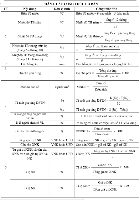CÔNG THỨC TRONG ĐỊA LÍ